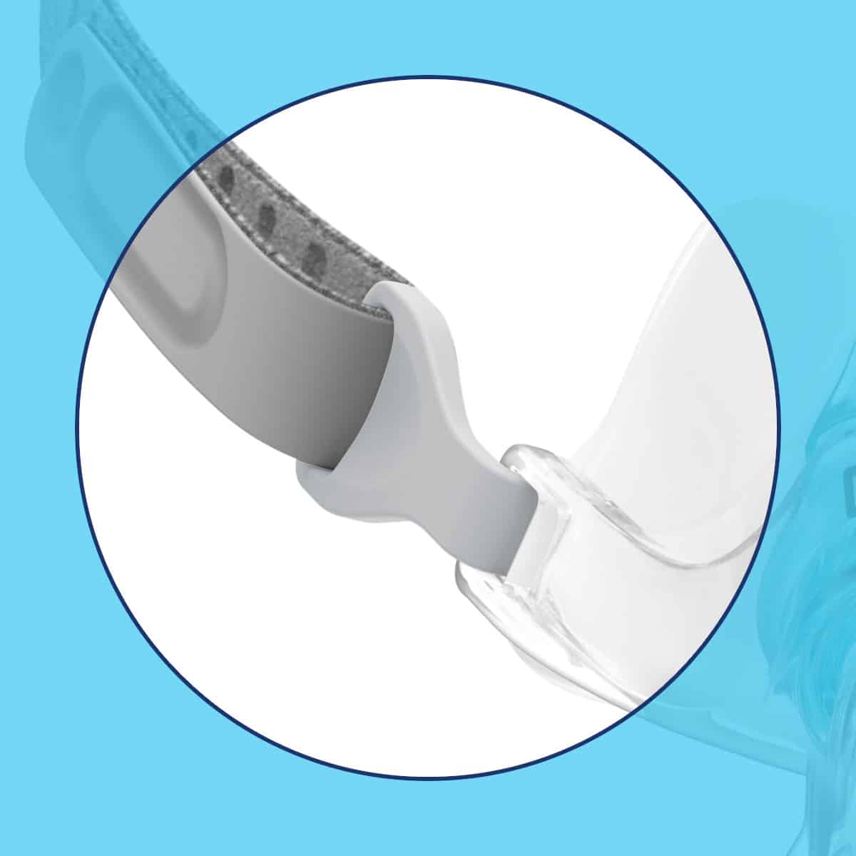 The Brevida Headgear clips fasten to the frame of the mask. The clips are designed for an easy on and off feature of the Brevida mask. They are made out of a soft plastic for continued use without breaking.