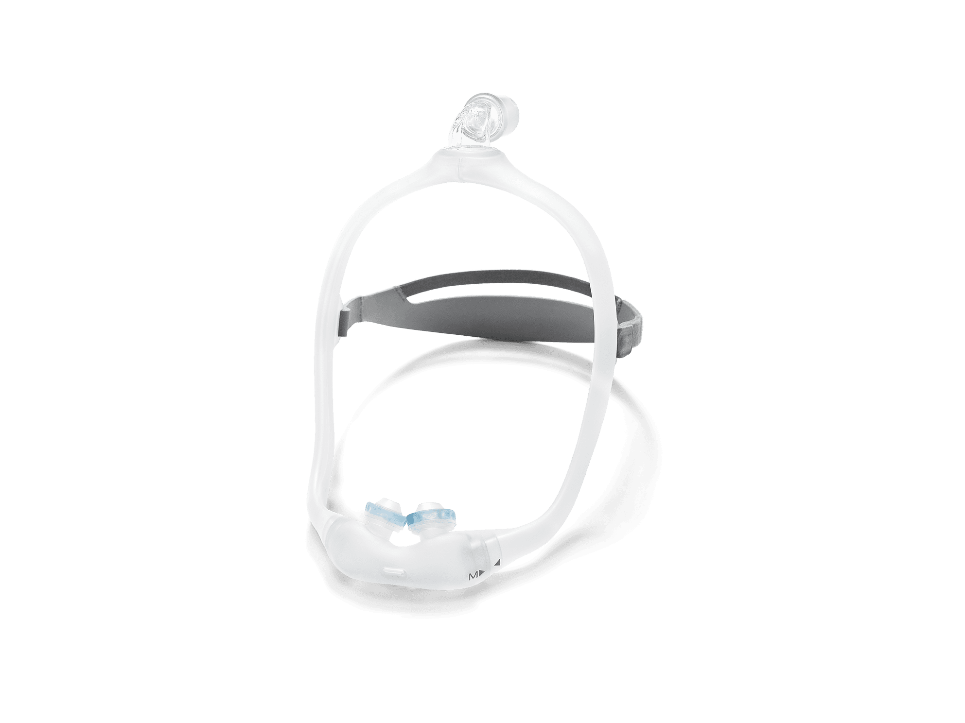 Gel Pillows Cushion:  Less discomfort on the face, nose, and nostrils.  Users rated DreamWear Gel Pillows more comfortable than their prescribed mask. Choose the cushion size so the pillows blue gel bases sit comfortably under the nose without any gaps. Only the soft silicone tip should be inside nostrils. Do not push any part of the blue gel base inside the nose.