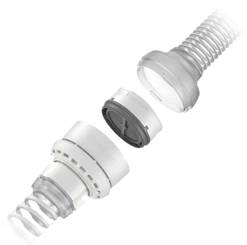 Exclusive to AirMini, HumidX Plus is a small heat and moisture exchanger. HumidX Plus is ResMed’s standard waterless Humidification system optimized for dry and high altitude environments where humidity levels are low. Designed to provide comfortable therapy while at home or while traveling. When you exhale, heat and moisture is captured and stored within the HME’s tiny paper ridges. When you inhale, this heat and moisture is released to humidify the air you breathe in.