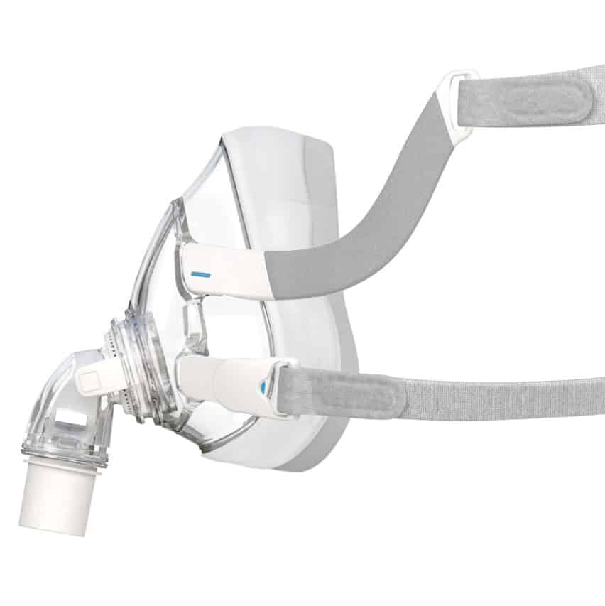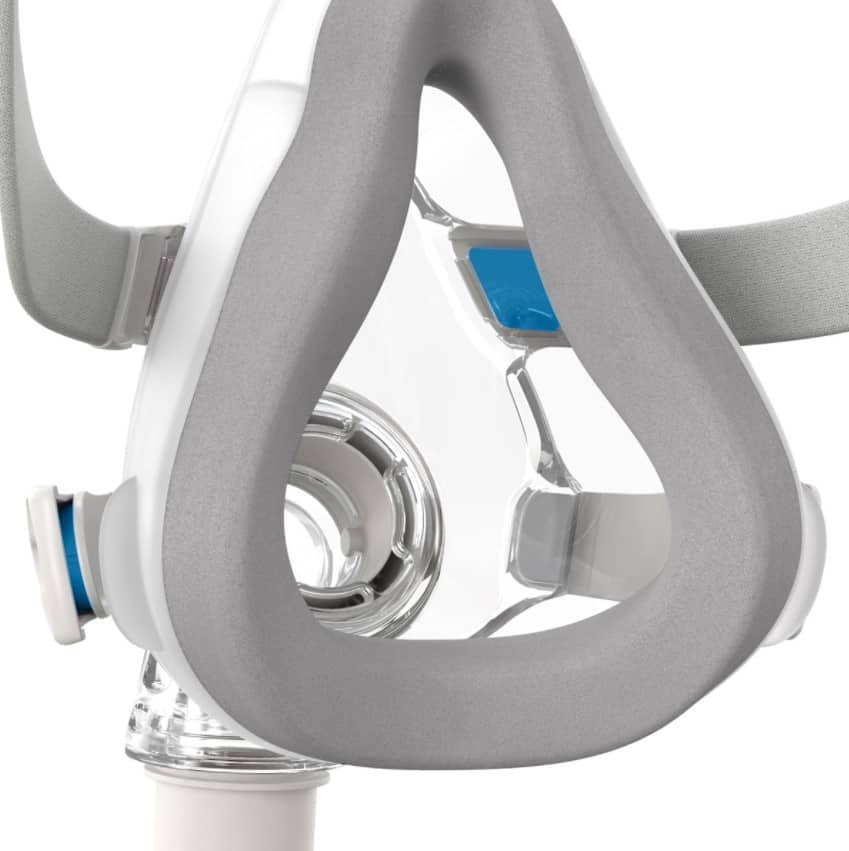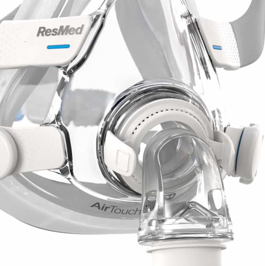 The Airtouch mask system comes equipped with magnets that attach the headgear to the lower end of the frame. These magnets allow for the mask to be easily taken on and off with two simple clicks. This puts an end to fighting with those velcro straps on a nightly basis. The quick-release elbow located on the front of the mask allows for easy removal of the tubing for those nighttime bathroom breaks, without ever having to take off the mask. The Quieting feature is built into the quick release elbow. This allows for the mask to be 89% quieter than before!