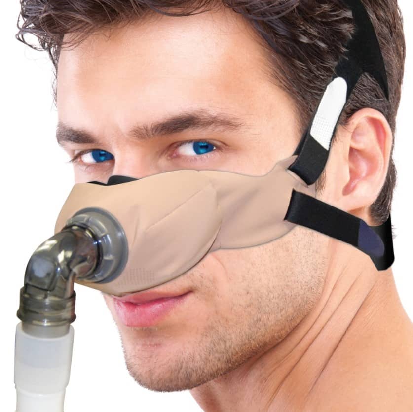 Light and breathable SleepWeaver Elan Nasal Mask is the skin-friendly, non-allergenic CPAP mask solution without latex or silicone. Elan’s low profile design reduces facial contact and the open style headgear provides a clear field of view. The cloth cushion inflates naturally during sleep therapy to provide a leak-free seal with no pressure points. With no hard plastic frame or forehead support Elan is an excellent solution for sleepers in any position as well as patients with facial hair.
