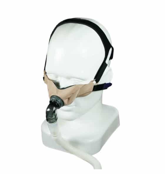 SleepWeaver Elan Nasal CPAP Mask with Headgear, Small, Beige, Soft-Cloth, Latex-Free. Features exhalation holes under the mask to match up with your natural nasal exhalation. The mask is angled so the exhalation doesn’t bother you or your bed partner. SleepWeaver Elan incorporates the revolutionary Circadiance soft-cloth technology that quietly inflates like a balloon to create an airtight seal. The breathable, non-allergenic mask is comfortable and it eliminates leaks, pressure points, sore spots, and pinching. The loose fit prevents strap marks, and the open-face headgear design accommodates eyeglasses and allows virtually unrestricted vision – great for people who like to fall asleep while reading or watching TV.